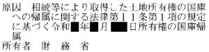 法務局ではなく、管理庁(国庫帰属地を管理することが決定した行政機関)が所有権移転の嘱託登記をしました。