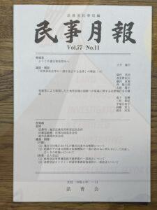 | 書籍名 | 民事月報 Vol.77 No.11 |