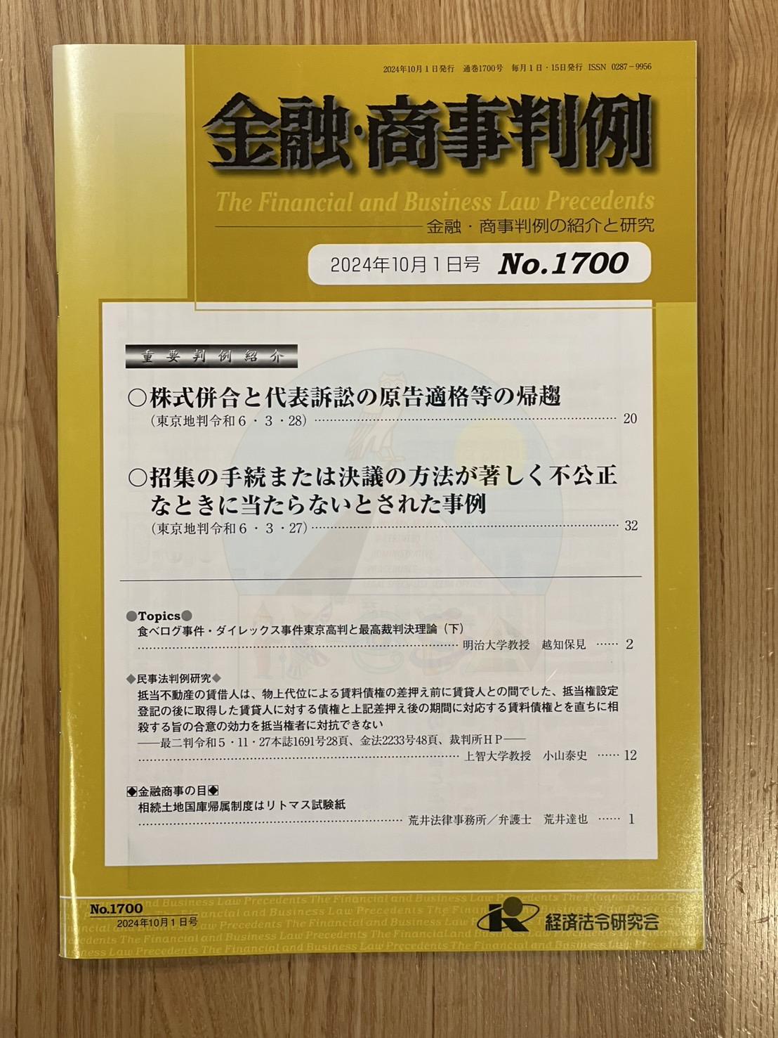 | 書籍名 | 金融・商事判例 No.1700 2024年10月1日号 |