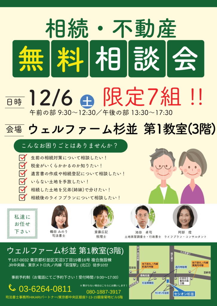 相続・不動産無料相談会のご案内【20251206@ウェルファーム杉並】