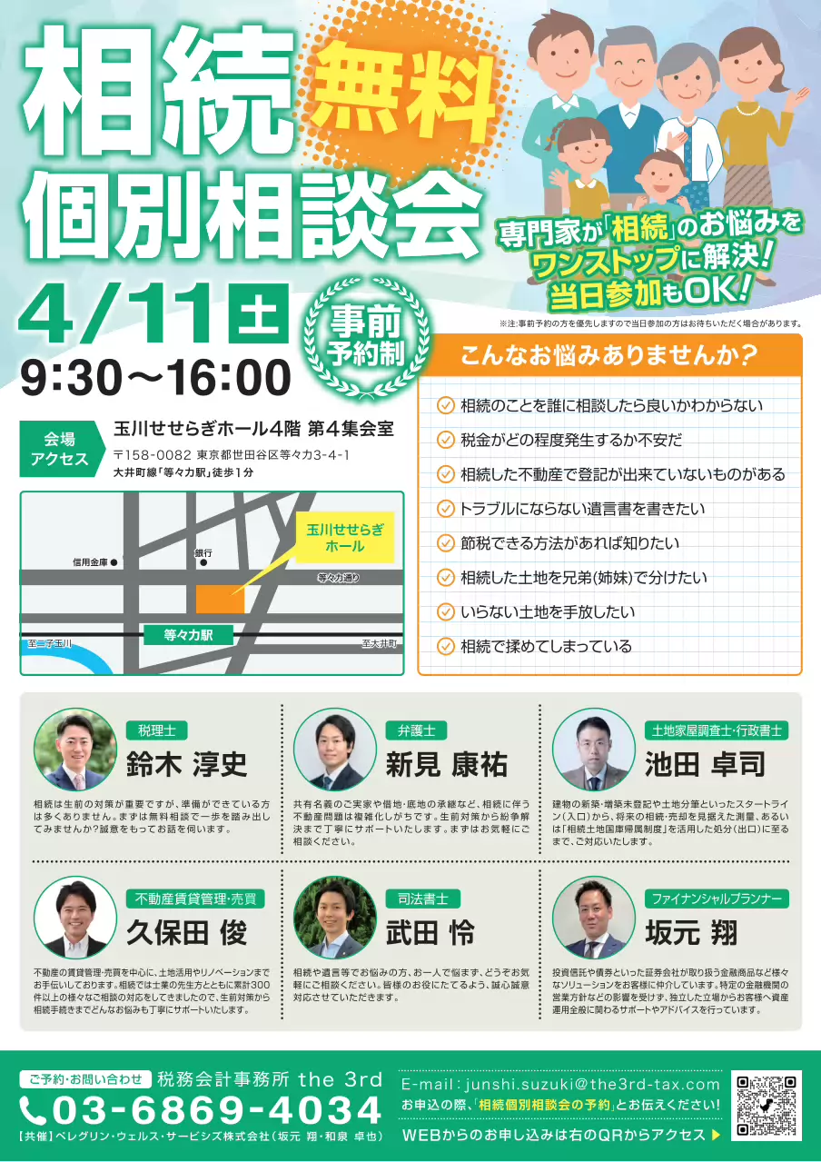 相続無料個別相談会のご案内【20260411@玉川せせらぎホール】