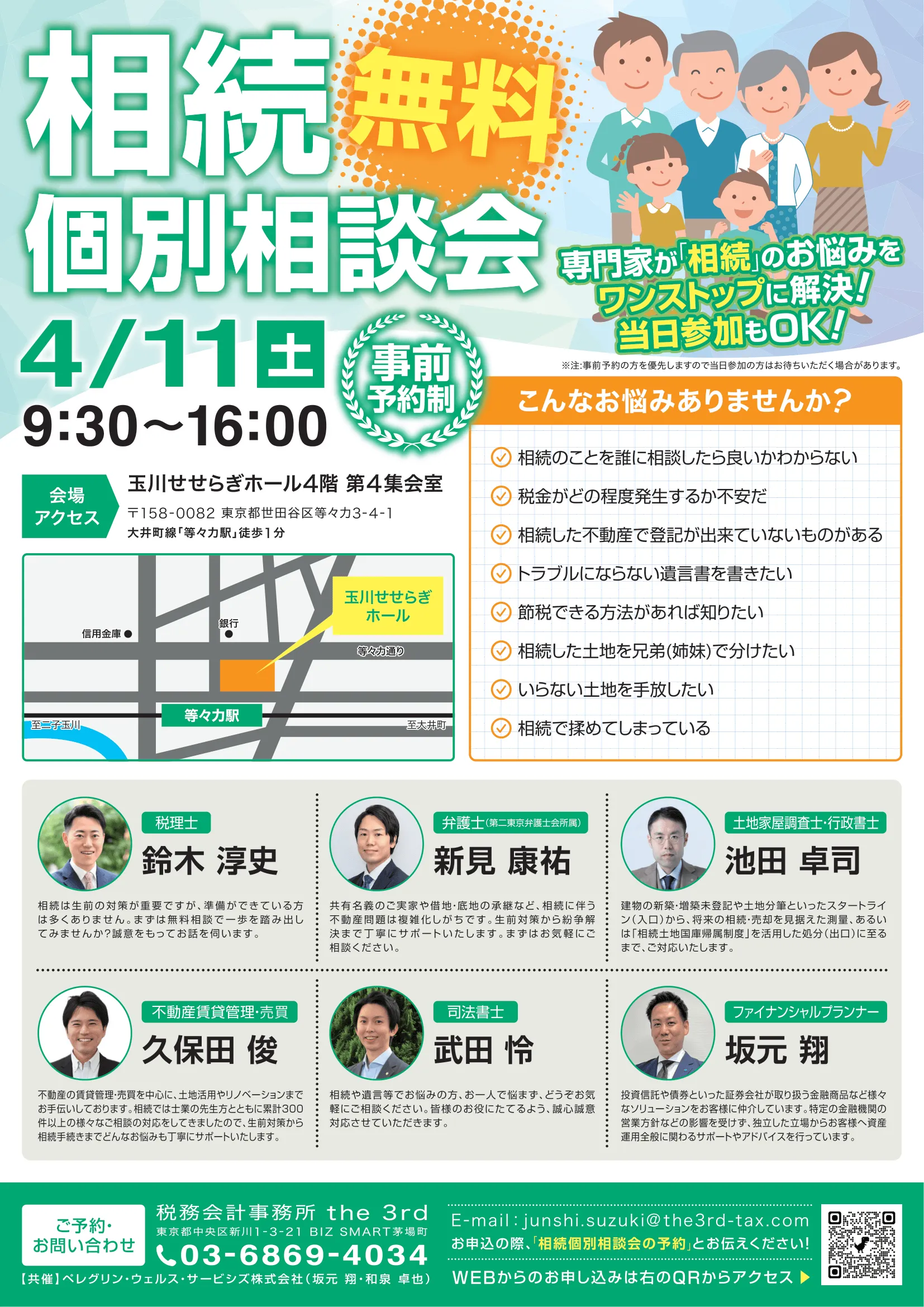 相続無料個別相談会のご案内【20260411@玉川せせらぎホール】